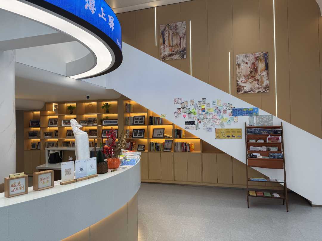 “南西・海上驿”不仅提供了基础的便民服务,还融入了许多创新元素。驿站占地200多平方米,设有近40个休憩座位,能够满足游客临时休息的需求。同时,这里还可以举办企业活动、文化讲座和主题展览等多元场景。服务细节上,驿站提供了借伞、急救物资、茶水等基础保障,还配备了独立茶室和自助贩卖机,让游客在需要帮助或需要补充能量时都能得到满足。