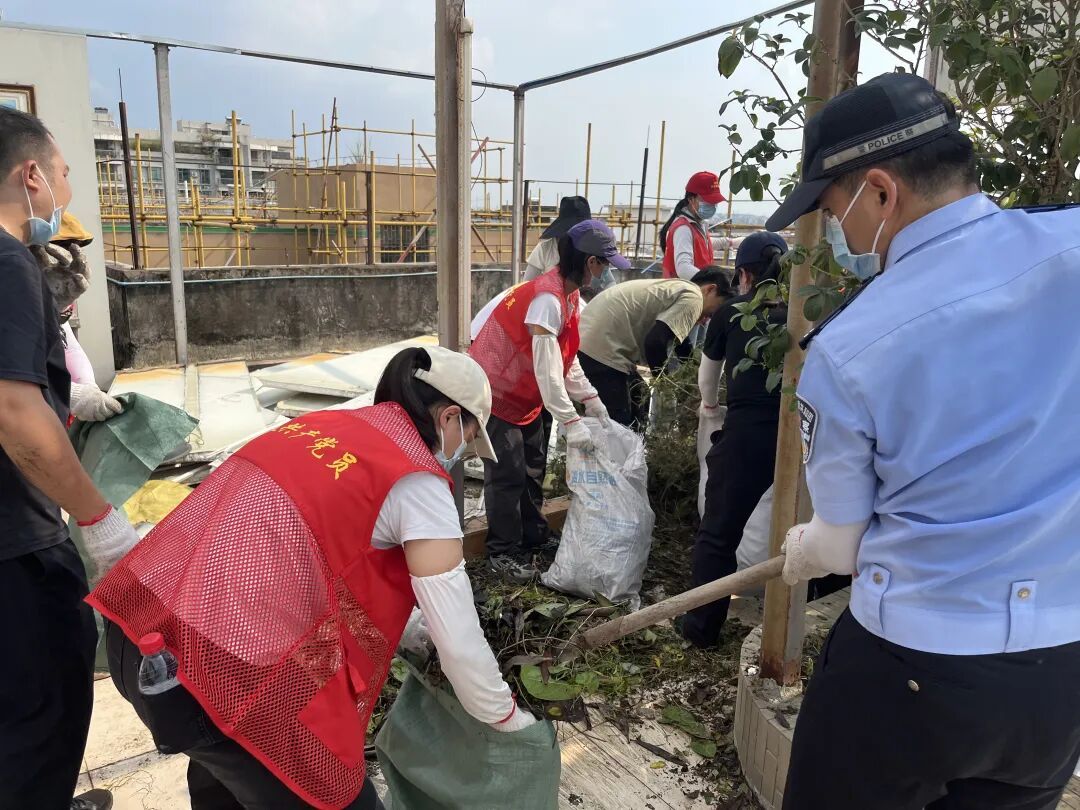 9月12日,狮岭镇各部门、村居联合机关下沉人员、结对单位,凝聚“狮岭一家人”志愿服务队等队伍力量,常态化开展爱国卫生统一行动,对各类常见蚊虫孳生地进行清理,推动群防群控落到实处。对公共区域开展“拉网式”清理,覆盖道路、绿化带、垃圾收集点等,彻底清除积水和杂物,杜绝蚊虫孳生环境。